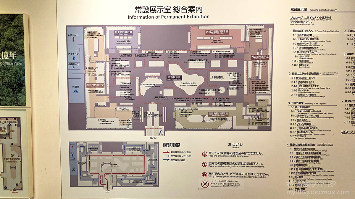 館內分別有博物館跟美術館兩座展館,門票是分別售賣的,也有可同時參觀兩個館的共通券。每月第三個週六是「家庭日」,帶小孩的家庭共通券打七折優惠。時間有限的觀光客,建議就依個人興趣先選擇一個展館參觀就好,展館空間不小,就算只是走馬看花,感覺也要花上一、二個小時的時間停留。如果你跟我一樣,對沖繩的人文及歷史感興趣的,建議可以先選擇參觀博物館。