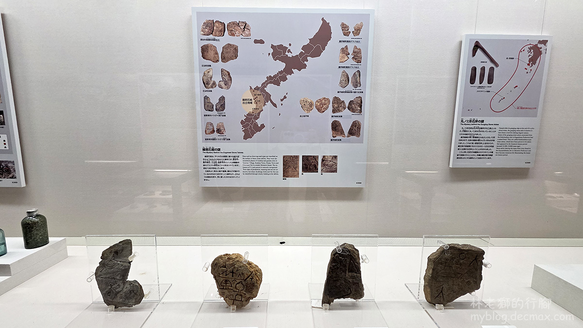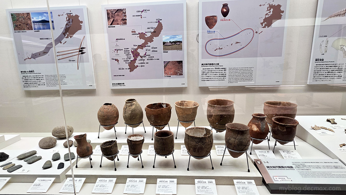這裡展示從繩文時代到近代出土的器具、文物。以及在各個城跡遺址挖掘到與中國和東南亞的陶瓷碎片,展現琉球當年國際貿易的興盛。其中還展示著「線刻石板」,上頭刻有神秘的線條與圖案,代表何意至今仍是尚未解開的謎團。