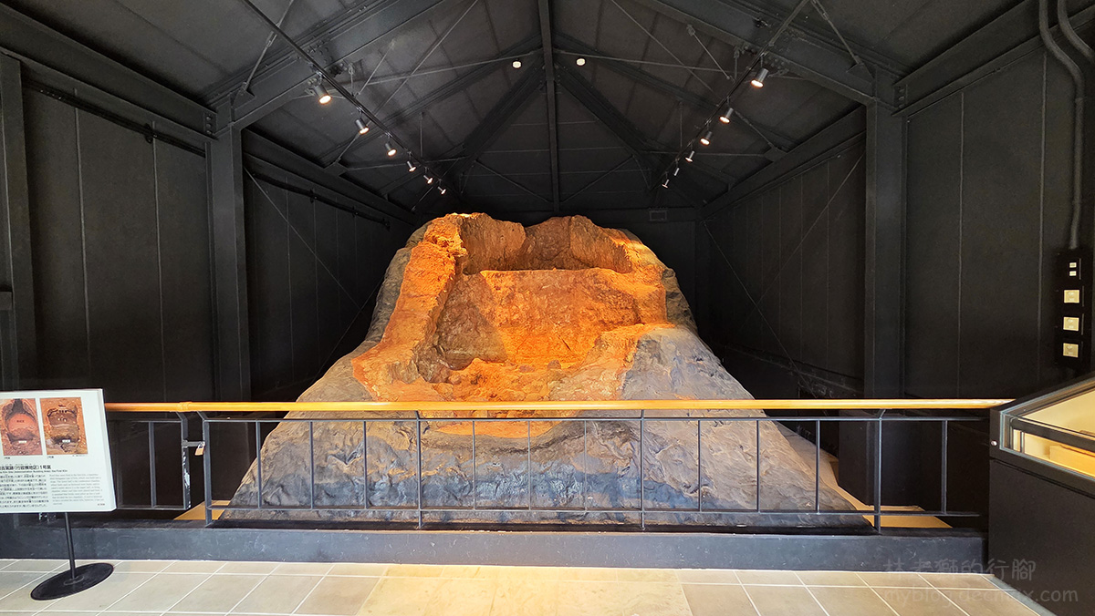 還沒走進場館,在中庭就先看到仿琉球傳統高倉及古民家的戶外免費展區。再往裡面走去,還有一棟放置湧田窯的展廳,據考證湧田窯是17世紀琉球的窯業重心,當初在進行沖繩縣廳行政大樓工程時發現此古窯跡,整座窯是以考古發掘時的狀態,整座挖掘遷移至此展示。中庭周圍則是將附近一帶原有森林裡的代表性樹木,移植栽培展示於此。
