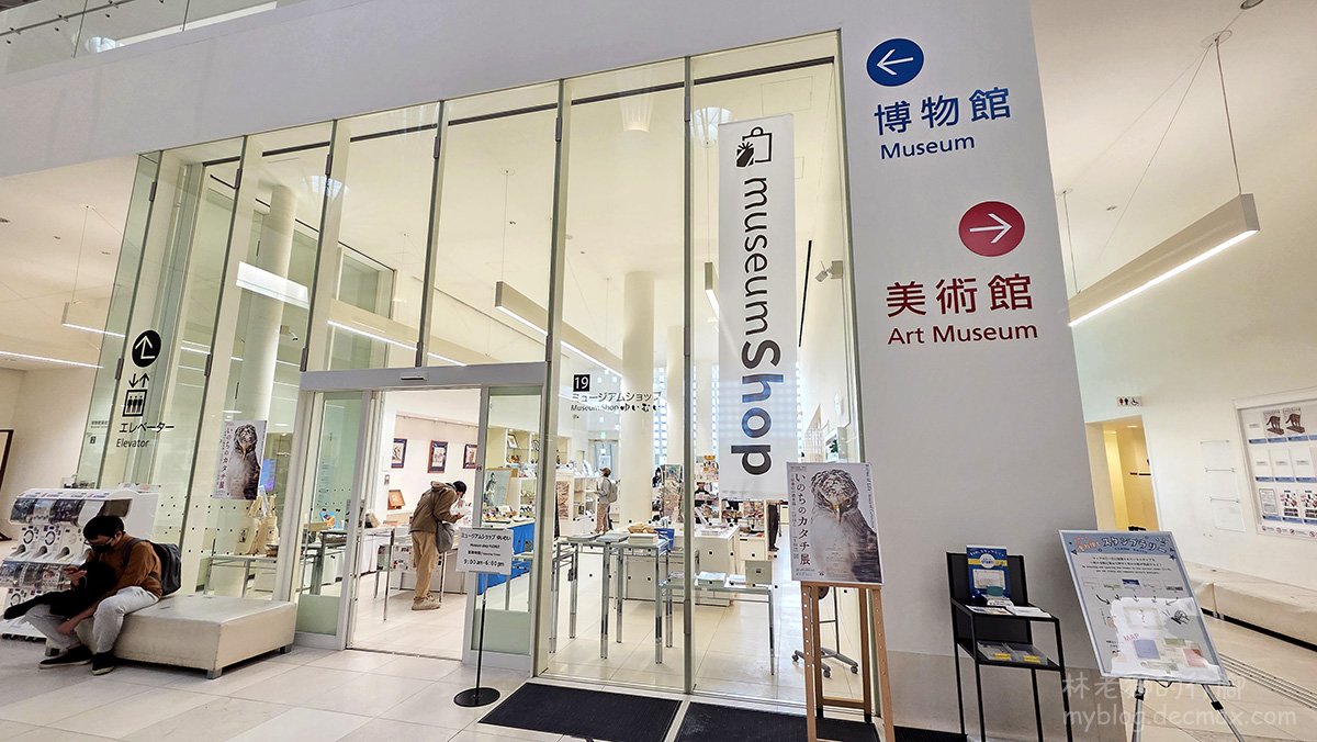 ▲館內設有紀念品商店。門口處有套印印章名信片可以收集。